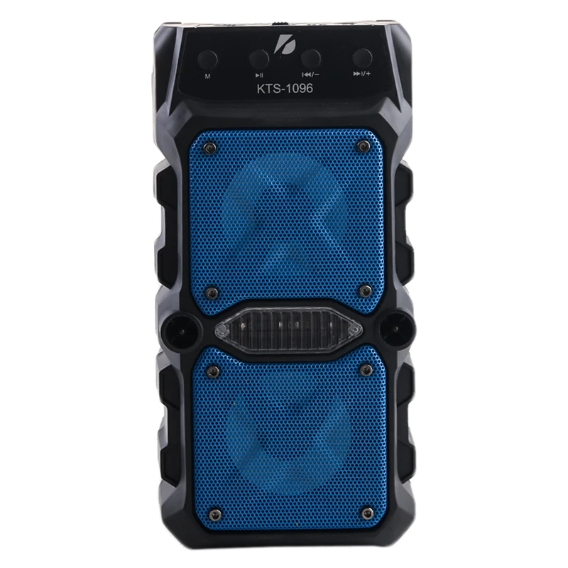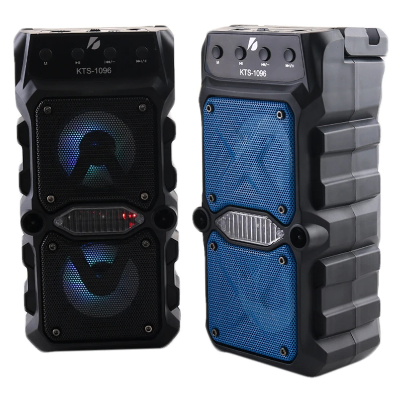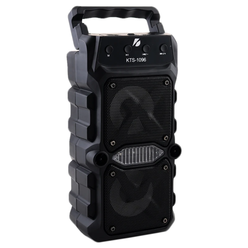 اسپیکر بلوتوثی پرتابل KTS-1096 با ورودی میکروفون، بلوتوث، AUX، کارت حافظه و فلش، ایدئال برای کارائوکه و تمرین آواز است. دارای ساب ۳ اینچی، رقص نور، فناوری TWS و توان ۱۰ وات. باتری ۸۰۰ میلیآمپری تا ۳ ساعت پخش مداوم را پشتیبانی میکند. مجهز به رادیو FM، صدای استریو و برد ۱۰ متری.